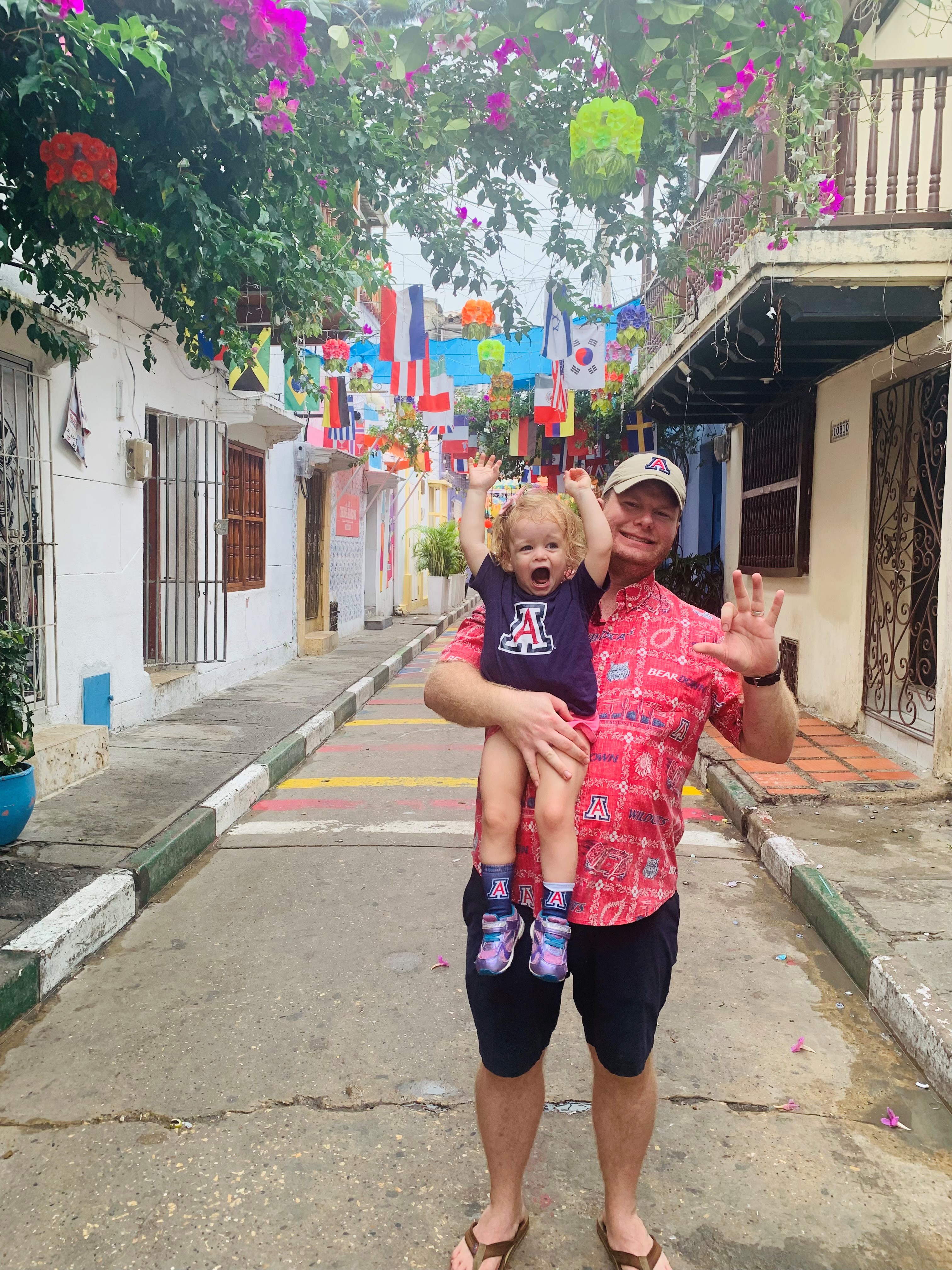 Former football student equipment manager (class of 2011) and daughter Esme (future Wildcat) Bearing Down in Cartagena, Colombia.