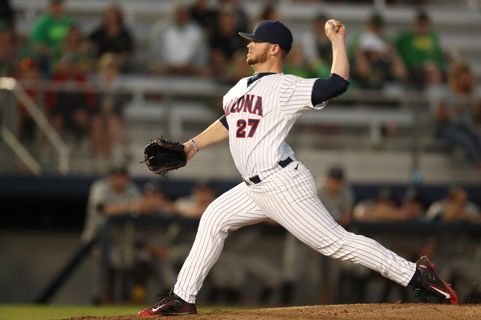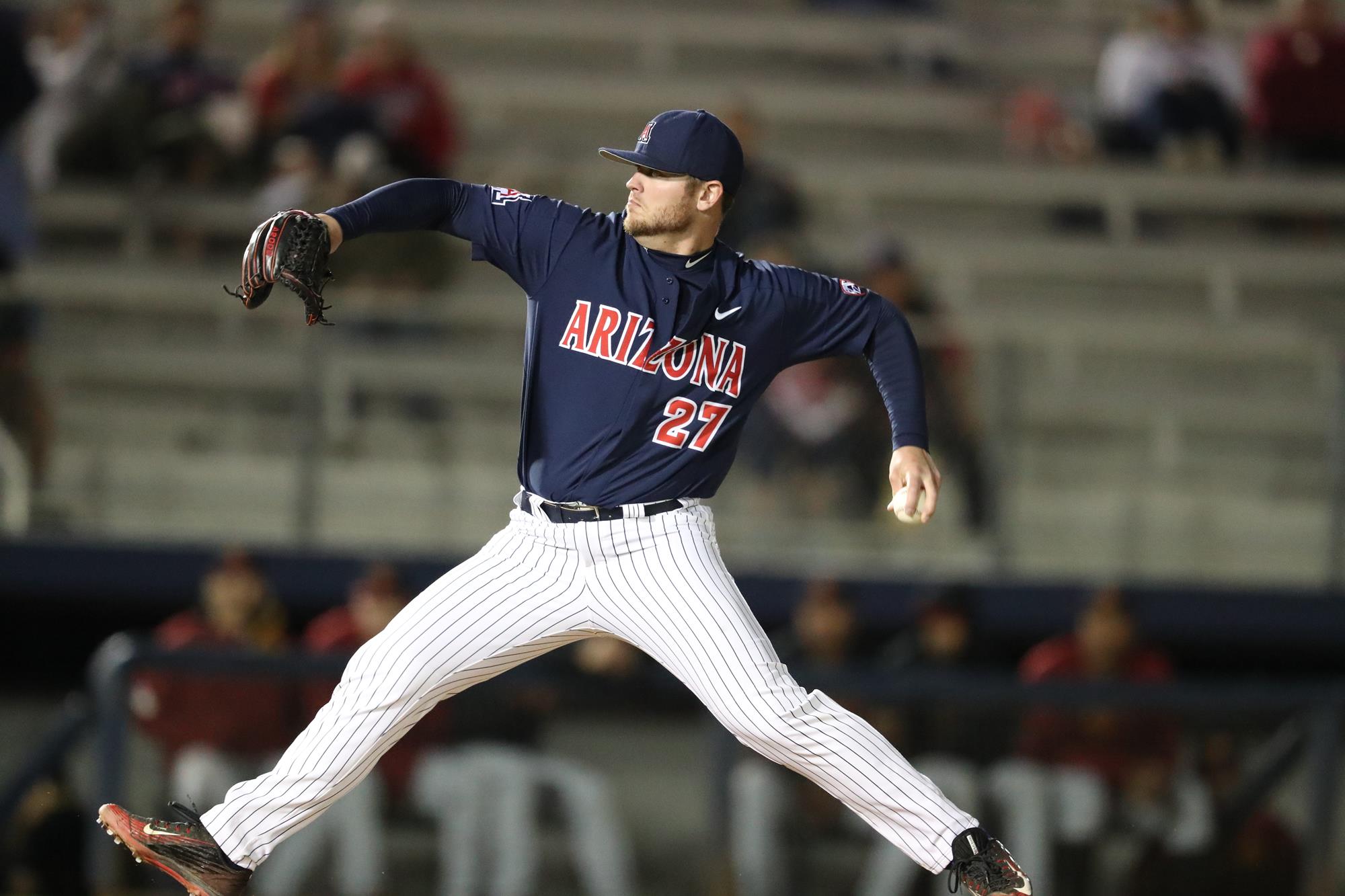 College World Series All-Tournament Team…All-Pac-12 Honorable Mention…Opening Day starter for the Wildcats, who made 18 appearances—all starts…Posted an 8-4 record with a 2.45 ERA in 110 1/3 innings…Walked just 22 and held batters to a .242 opposing batting average…Posted two complete games, including one shutout…Allowed just 17 extra-base hits…Had six pickoffs…Threw 16 scoreless innings at the College World Series, going 2-0…Tossed seven shutout innings against UCSB (6/22), allowing just five hits and two walks in an elimination game…Threw a shutout in Game 1 of the College World Series Finals against Coastal Carolina, scattering four hits and striking out six…In 16 total innings at the College World Series, allowed nine hits, no runs, five walks and eight strikeouts…Tossed seven innings, allowing four hits and one run against Rice (2/19) in the season-opener…Earned his first conference win against UCLA (3/24), going all nine innings and allowing one run on six hits, while striking out seven…Earned the win against Oregon State (5/7), going 6 2/3 scoreless innings, allowing five hits and striking out four…Threw 7 2/3 innings, allowing two runs and no walks, while striking out five against Arizona State (5/14)…Tossed six shutout innings at Hawaii (5/27) to earn the win…Posted a 4-1 record with a 1.35 ERA in 40 innings at Hi Corbett Field.
