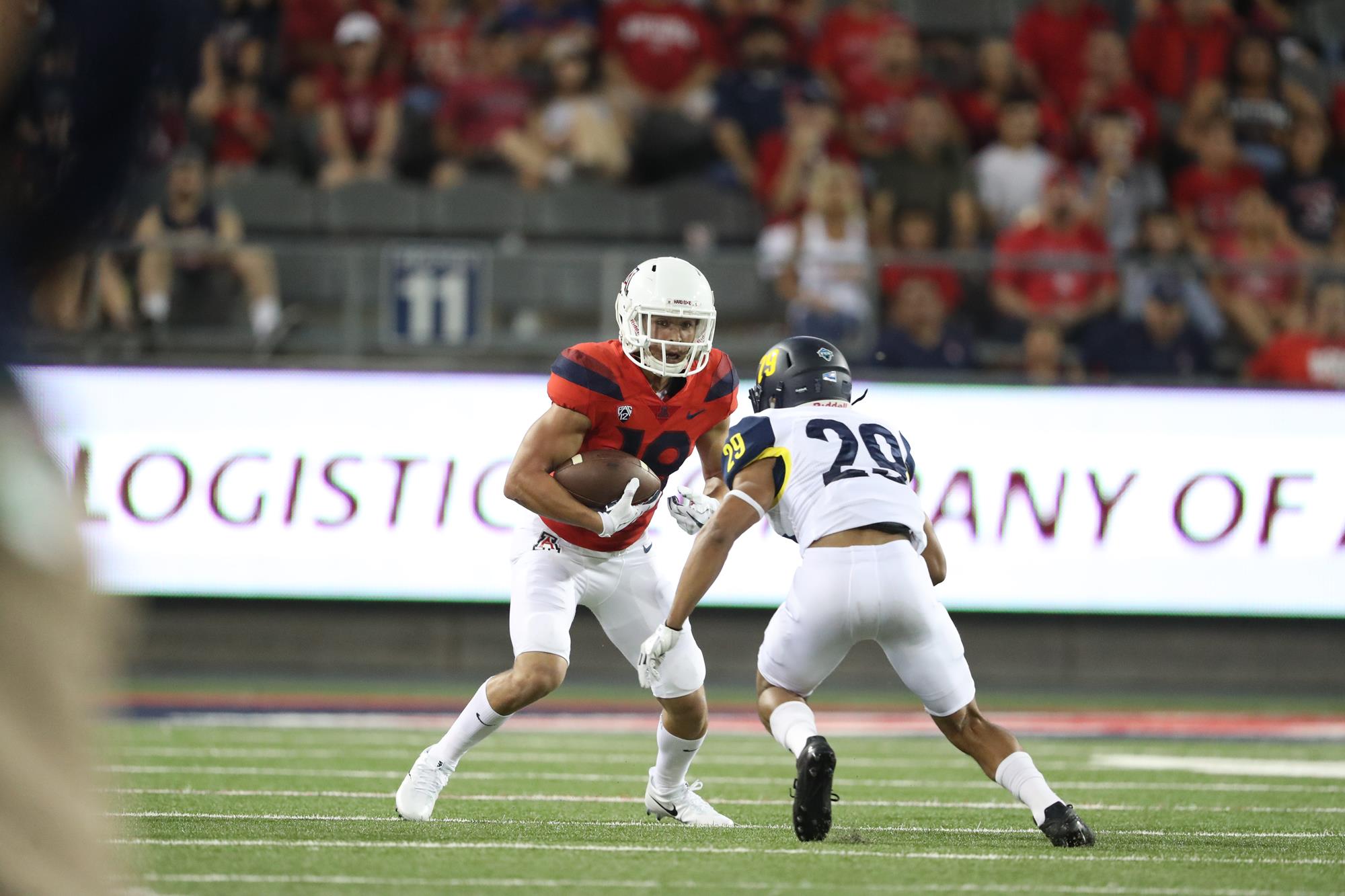 2018: Started all 12 games at outside receiver...Hauled in 18 receptions for 268 yards (14.9 average) and four touchdowns, which included three over 30 yards…Season-high 72 receiving yards vs. Colorado (Nov. 2) included season-long 57-yard catch…Multiple receptions in seven contests, including two each in final three games…Returned six kickoffs for 83 yards, paced by a 28-yard return against the Buffaloes…A sturdy blocker on the outside also aided the Wildcats’ rushing attach, which led the Pac-12 with 202.4 yards per game…Concluded season with two receptions for two yards against Arizona State (Nov. 24)…Two grabs for 39 yards at Washington State (Nov. 17)…Scored on a 57-yard yard touchdown reception and added a second catch for 72 totals yards in victory over Colorado…Started but did no record receptions against either Oregon (Oct. 27) or UCLA (Oct. 20)…Season-high four catches for 63 yards, including a 42-yard touchdown at Utah (Oct. 12)…Two receptions for 19 yards in victory over California (Oct. 6)…Caught two passes for 38 yards with a 32-yard touchdown against USC (Sept. 29)…One reception for two yards along with two kick returns for 31 yards against Southern Utah (Sept. 15)…One catch for eight yards at Houston (Sept. 8)…Opened season with two receptions for 24 yards against BYU (Sept. 1).