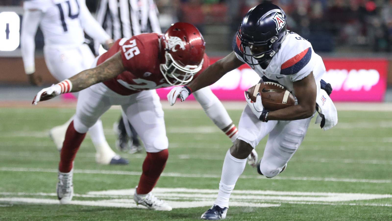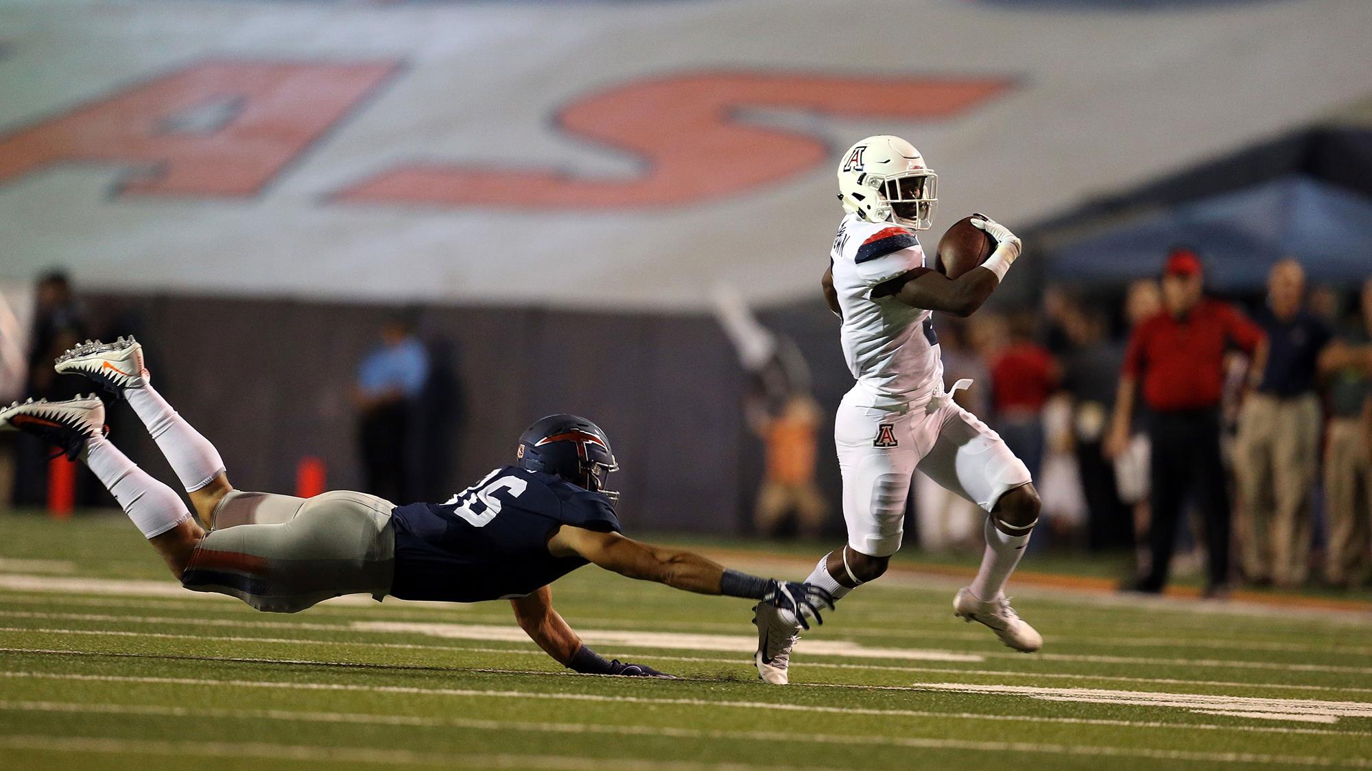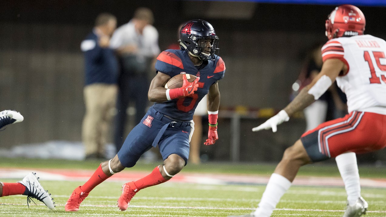 2016: Emerged as team’s top-playmaker in the passing game, starting 10 games and playing in all 12 contests … Led the squad with 521 receiving yards on 29 receptions, producing an 18.0 average per catch that was easily tops on the team. The average per catch clip would have led all Pac-12 receivers if he qualified with enough total receptions … Totaled 12 plays (eight receiving, two rushing and two on kick returns) that went for 20-plus yards, including four pass plays over 50 yards … Broke out in third game with five receptions for 92 yards and a touchdown against Hawai’i (Sept. 17) … Followed it up with career-best performance against No. 9 Washington (Sept. 24). Hauled in season-high seven passes for 114 yards, which included a 54-yard reception to set up tying touchdown late in fourth quarter to force overtime … Caught four passes for 50 yards and a touchdown at UCLA (Oct. 1) … Opened game with 75-yard touchdown at Utah (Oct. 8) where he finished with three catches for 89 yards. Also had one kickoff return for 28 yards … Tallied 32 yards on three grabs and notched a 30-yard kickoff return at Washington State (Nov. 5) … Collected 58 receiving yards on two catches and added a 29-yard rush at Colorado (Nov. 12) … Saw a streak of 10-consecutive games with a reception snapped in season finale against Arizona State (Nov. 25) when UA did not need to attempt a pass in the second half. Chipped in season-long 30-yard rush.