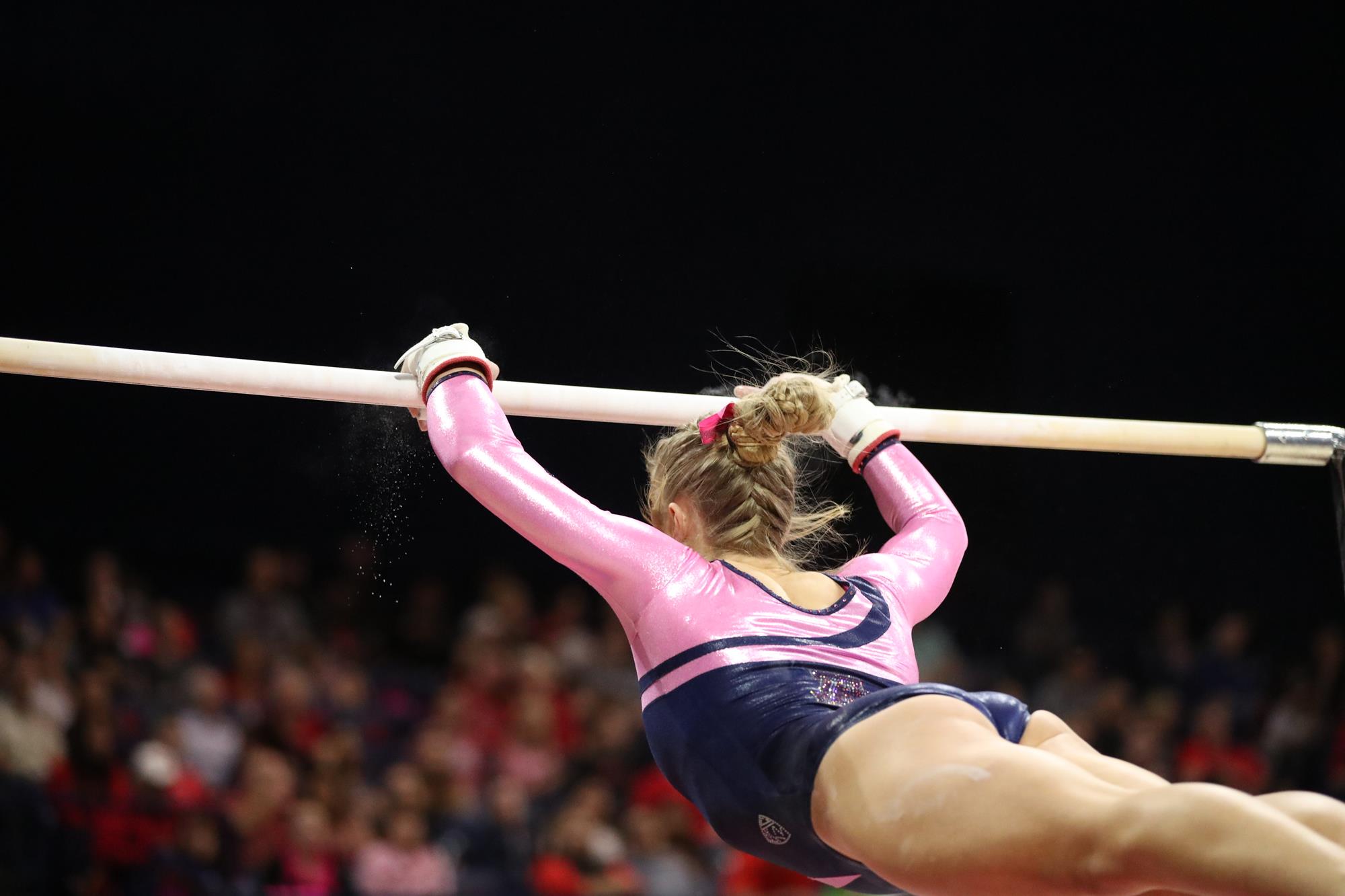 2018 (Junior Year): Competed on the uneven bars in every meet of the regular season… Earned a season high of 9.850 against Denver (1/6/18) and Arkansas (3/2/18)… Earned a 9.800 or higher on bars in 7 meets of the regular season… Was Pac-12 All-Academic Honorable Mention