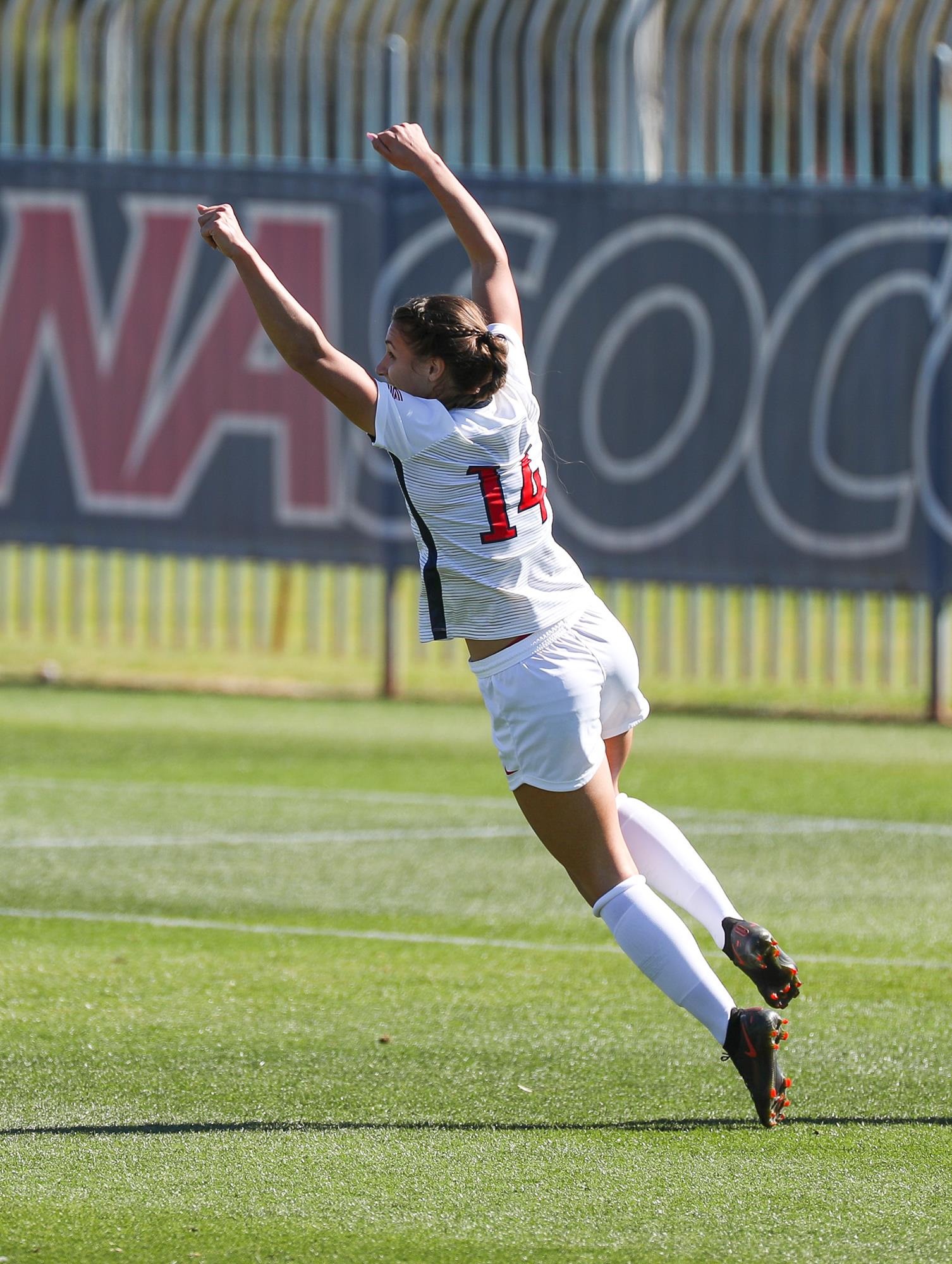 2021: In her final season at Arizona she started in all 18 of Arizona’s matches, totaling a career high of 1338 minutes on the pitch, the third most on the team … Led the 2021 team in all offensive areas, scoring nine goals for the third season in a row and earning one assist, totaling 19 points for the season … Took a season high of 62 shots with 24 being on goal (.387) … Scored four game-winning goals, with two being Arizona’s only Pac-12 wins … In her final match at Arizona she both tied and broke the program history record of 32 career goals against in-state rival Arizona State … She now holds the program record in career goals scored with 33 … Has played more matches than any Wildcat in program history (92) … Earned her first Pac-12 Offensive Player of the Week honor for her performance against ASU … The second Wildcat to receive a CoSIDA All-American First Team honor and the first to receive multiple CoSIDA All-America recognitions … In the fall of 2020 she had her playing right acquired by the Chicago Red Stars in the NWSL.