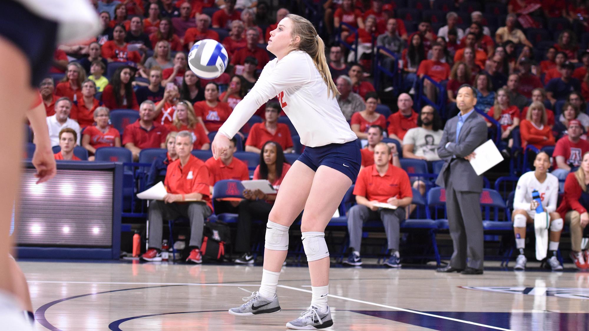 As a Junior (2018): Led the team in digs (3.51 digs/set) for the second straight season … Finished 10th in the Pac-12 in digs/set … Led the team in aces (0.27) and had 31 aces to just 21 service errors … Saw action in 115 sets over 31 matches; missed two matches due to injury/illness … Had a team-high 404 digs, just two shy of 10th in a season in UA history … Had 10-plus digs in 23 of the 31 matches she appeared in, including 11 straight matches from 9/7-10/7 … Had 15-or-more digs in 13 matches, including a career-high 26 vs. California (11/21) … Named Pac-12 all-academic honorable mention for the second straight season … Led the team in aces in 15 matches and digs in 20 matches, both the most on the team … Finished second on the team with a career-high 1.05 assists/set (121 total) … Also set career highs in total aces (31), aces/set (0.27), total digs (404) and digs/set (3/61) … Neared her first career double-double with a career-most nine assists to go along with her 18 digs vs. Utah (10/21) … Needs just 184 digs in 2019 to become the 17th player in school history to reach 1,000 career digs and just 299 digs to crack the UA career top 10.